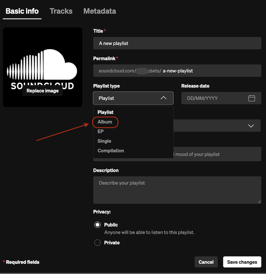 Wenn Sie mehrere Tracks hochladen, wird standardmäßig ein Album erstellt. Sie können es später in eine EP oder eine Playlist umwandeln.