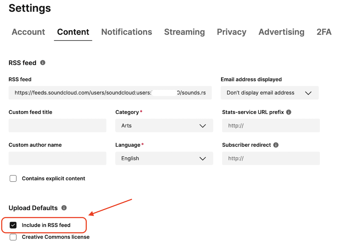- Double check the upload default setting. If you will be primarily uploading podcasts, you will want this setting enabled. Regardless of what you choose here, you can override the default setting on the individual track edit page.