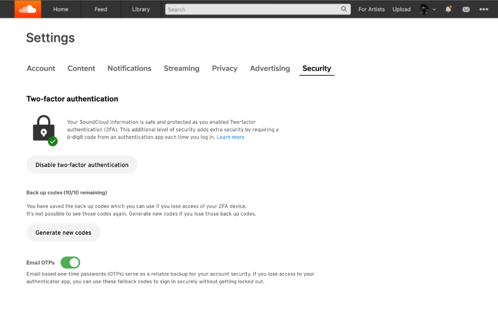 Two-Factor Authentication (2FA) adds an extra layer of security to your SoundCloud account by requiring a code from an authenticator app when signing in.