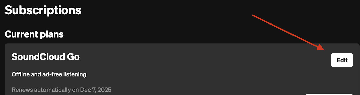 2. Click 'Edit' next to your current subscription status and follow the prompts to cancel your plan: