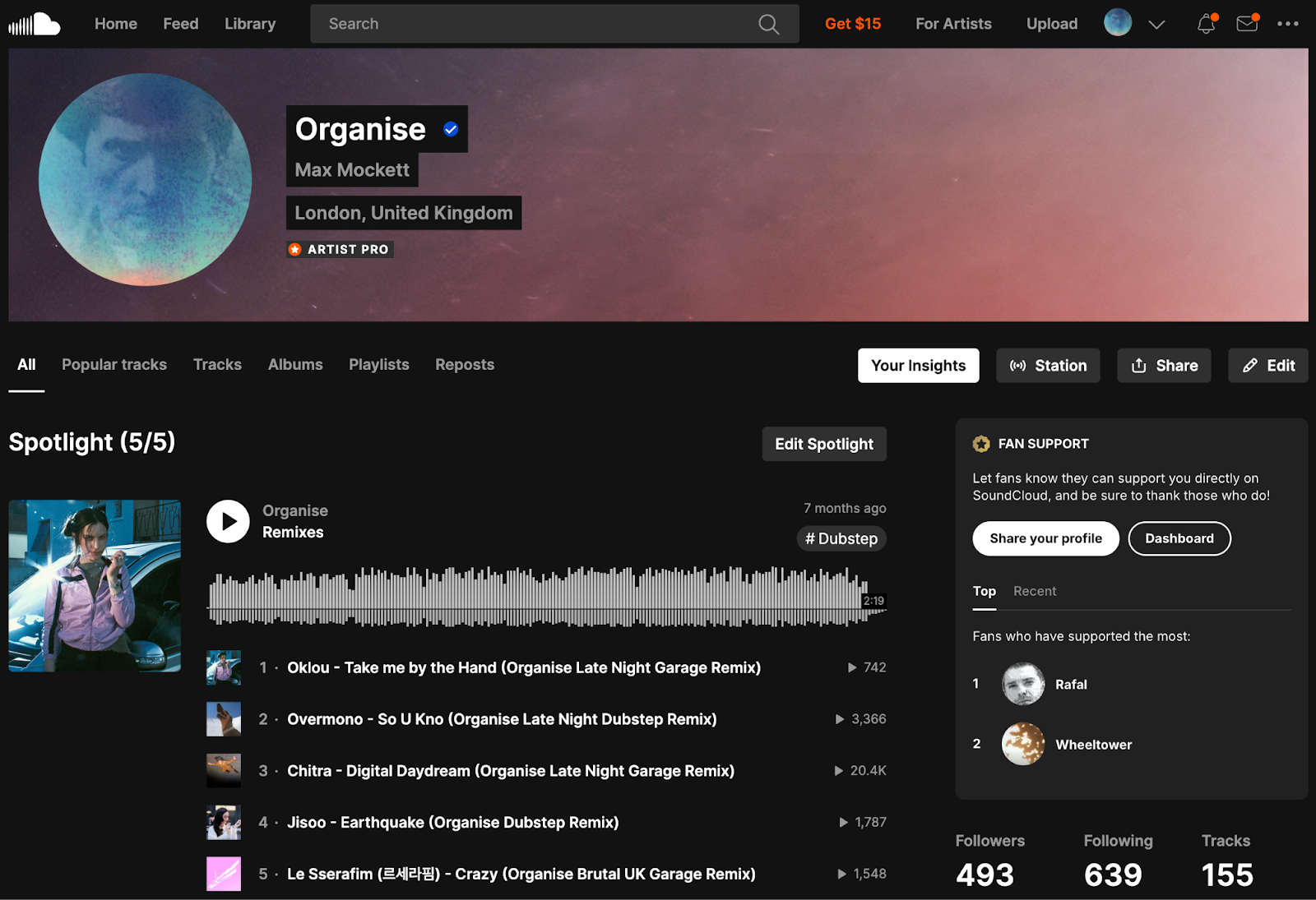 Fan Support stelt fans in staat om hun favoriete artiesten op SoundCloud financieel te ondersteunen—verder dan alleen afspelen, reacties, reposts en likes. Fans kunnen eenmalige betalingen sturen, en artiesten behouden 100% van het bedrag (na kosten voor betalingsverwerking). Top Supporters verschijnen op een publieke ranglijst op het profiel van de artiest.
