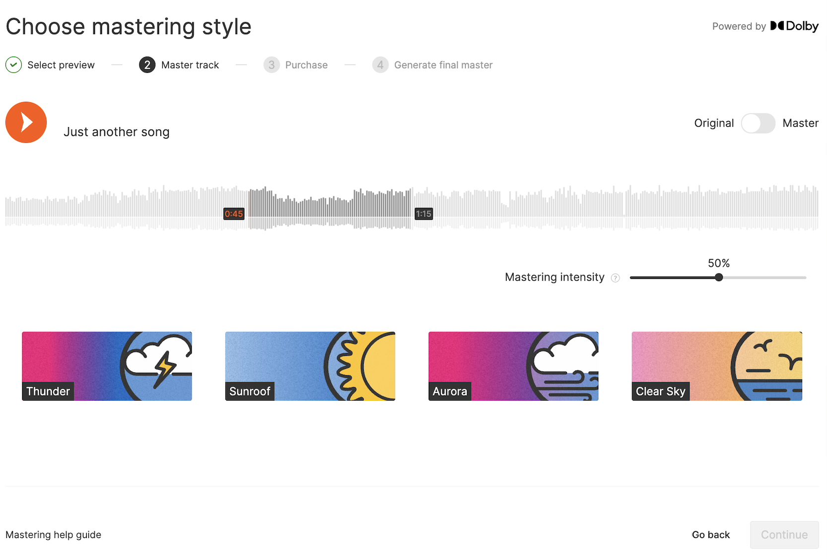 Por enquanto, temos quatro estilos de masterização para usar. Com o tempo, vamos experimentar a introdução de mais.